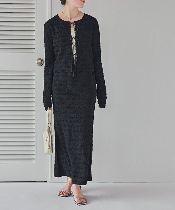 リボンデザインジャガードトップス