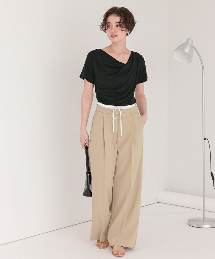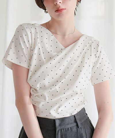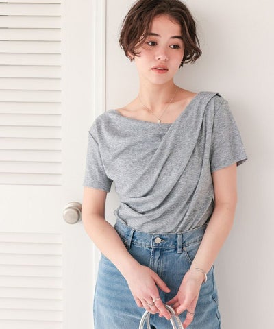 ・ドレープディテールでトレンド感抜群のオフショルダーTシャツ