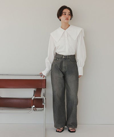 ・トレンドにもぴったりなBIG襟がポイントのブラウス。