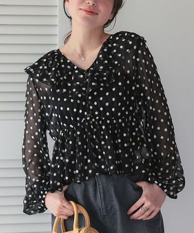 ・フラワー刺繍入りのシアー素材