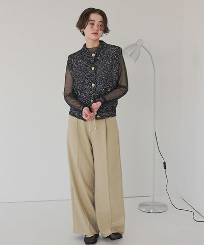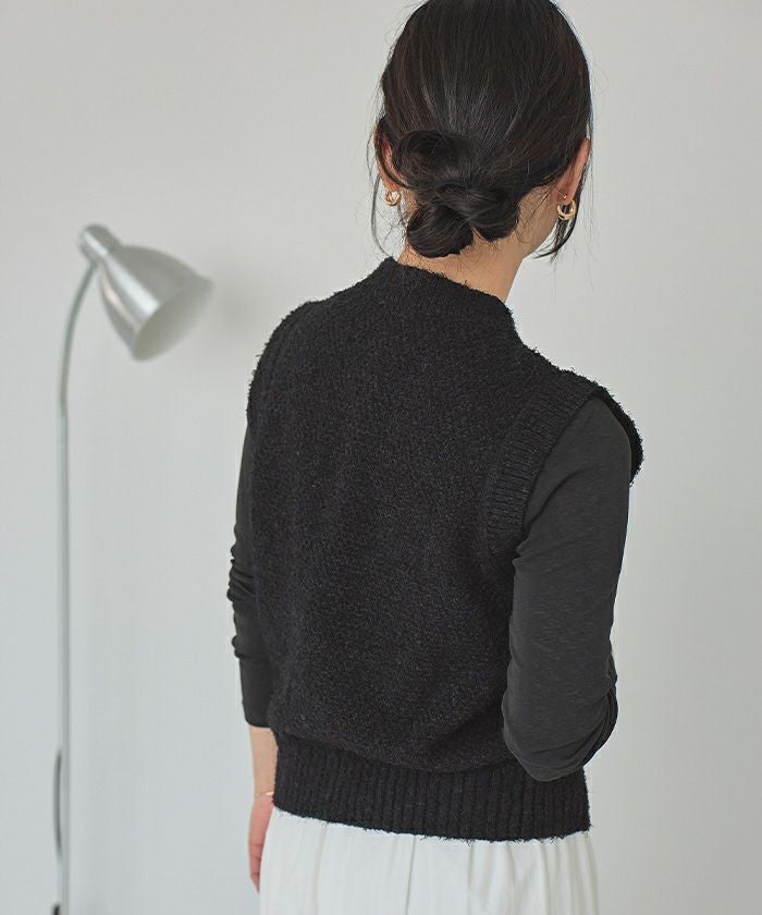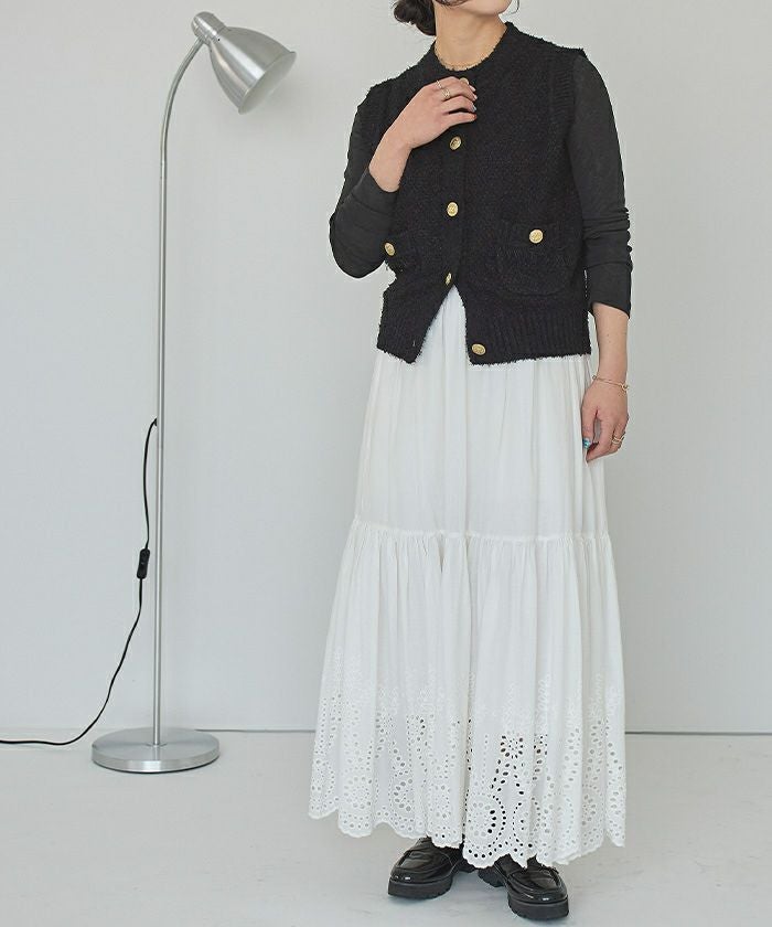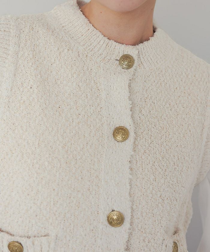 ゴールド釦ツイードニットベスト