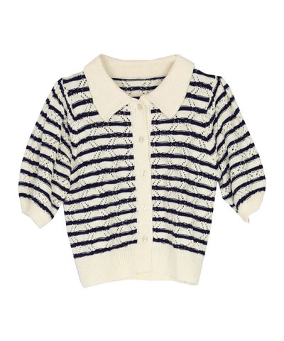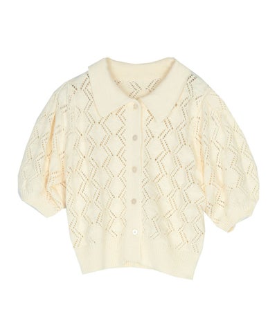 透かし編みパフスリーブニットトップス