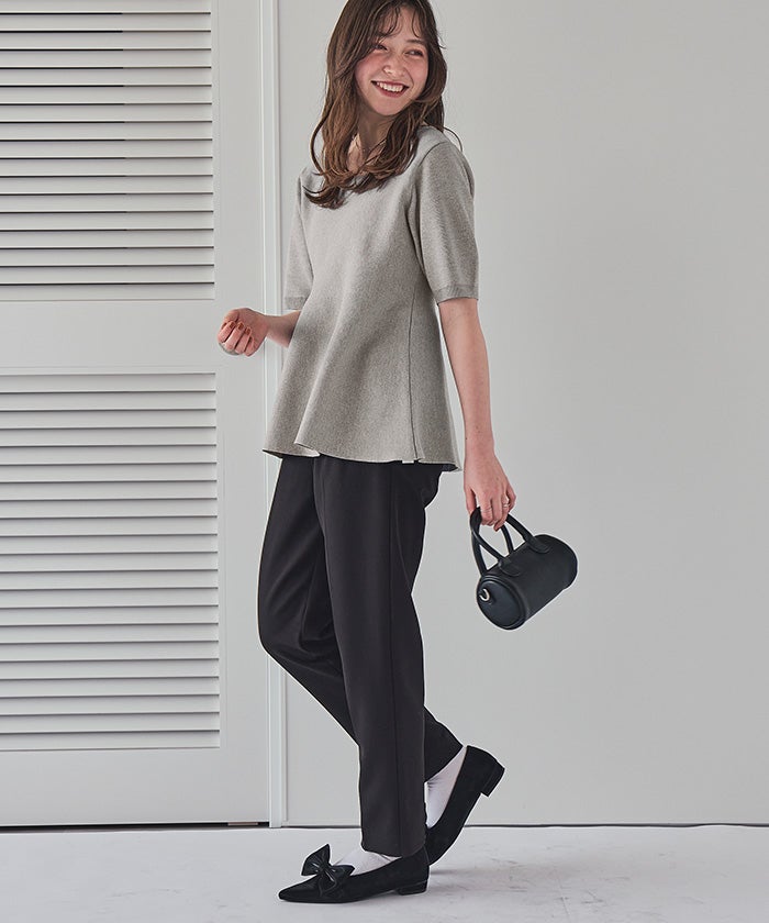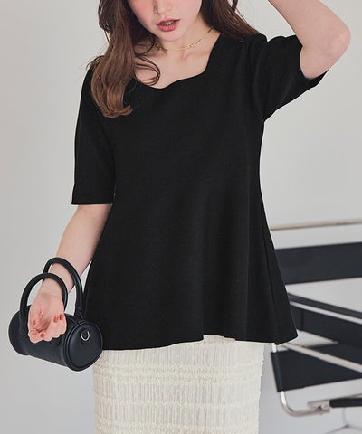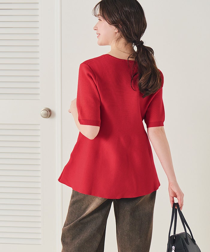 ハーフスリーブペプラムニットトップス