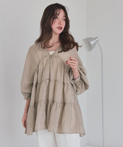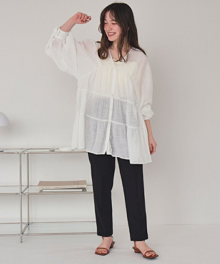 妊娠中に産前産後で着れる服を探して購入しました。お腹が大きくても授乳中にも着れて大活躍でした。強いて言えば袖口が狭めで、ボタンを留めたままだと腕捲りができないのが、少し不便に感じました。