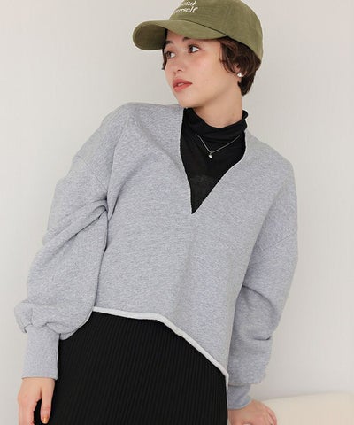 ・Vネックデザインで首元や顔回りをスッキリ見せ◎
