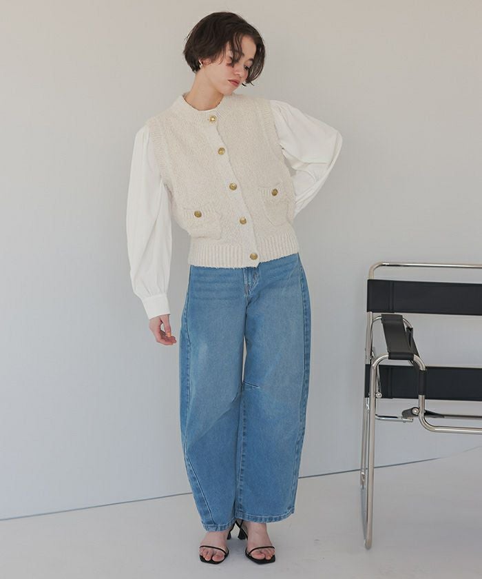 オフホワイトを購入しました。袖が膨らんでいるようなデザインも可愛いですが、裾の形も好きでした。ボタンが黒でアクセントになっています。