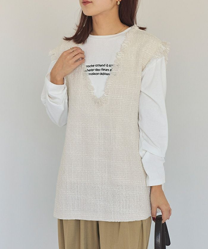 フリンジツイードベスト【メール便可/100】