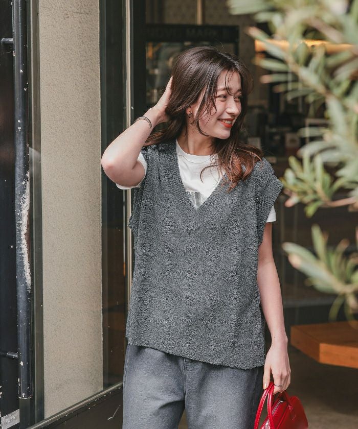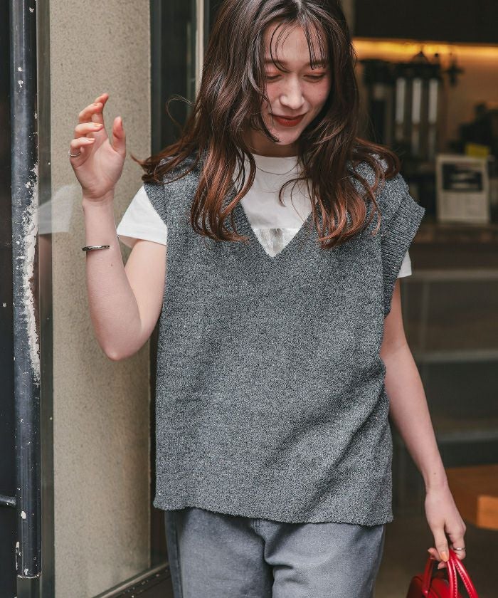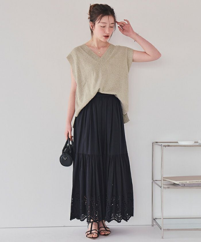・エッジの効いた編みが魅力的なスパンコールニットベスト