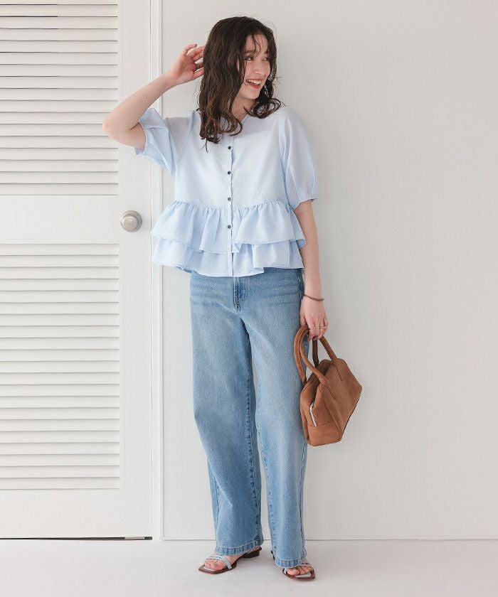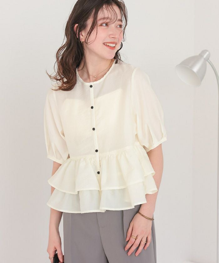 ・上品な、程よく張り感のあるシアー素材で、軽やかな印象のブラウス。