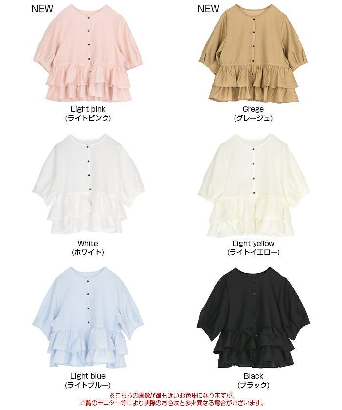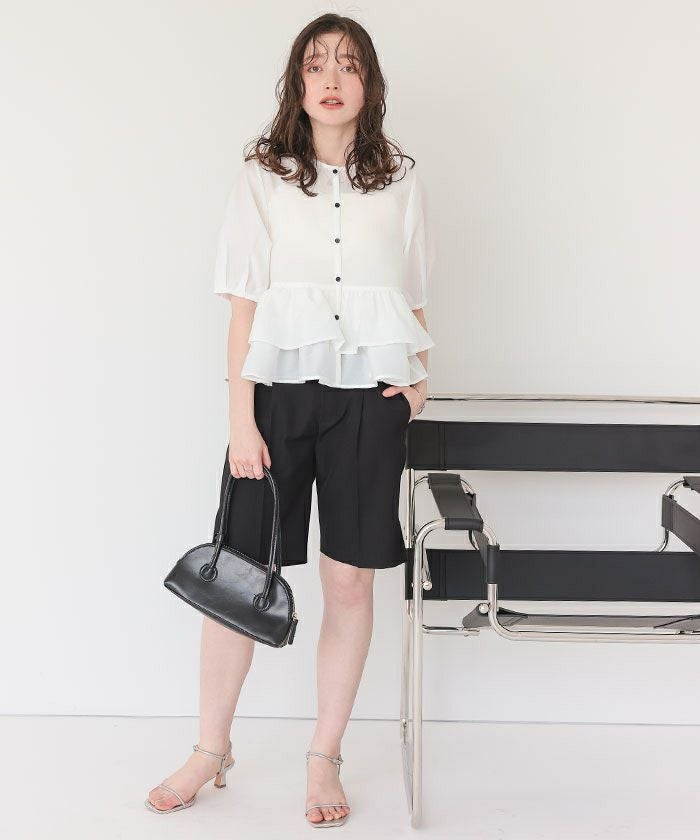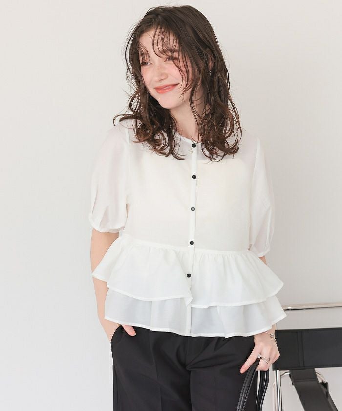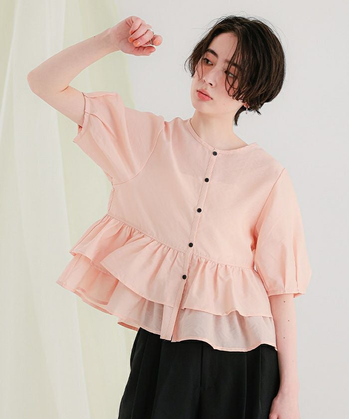 ペプラムショートランタンスリーブブラウス【メール便可/100】