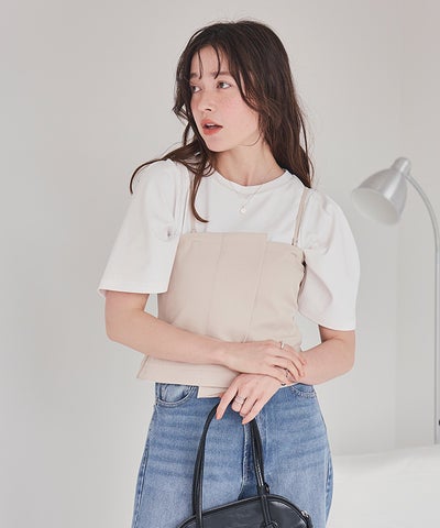 ・構築的な折り返しデザインでコーディネートのポイントになるキャミソールトップス