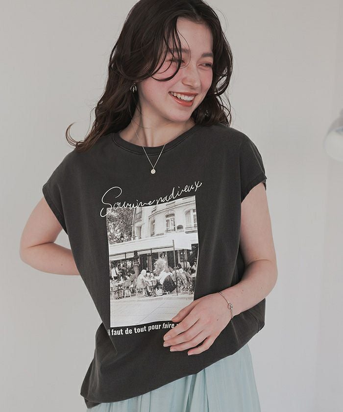 フレンチスリーブピグメントフォトプリントTシャツ【メール便可/80】