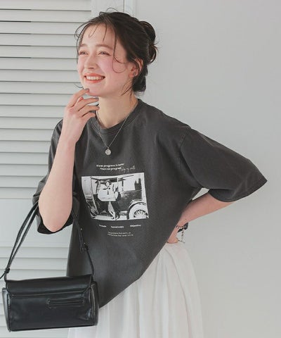 ・こなれ見えが叶う、ピグメント加工されたプリントフォトTシャツ。