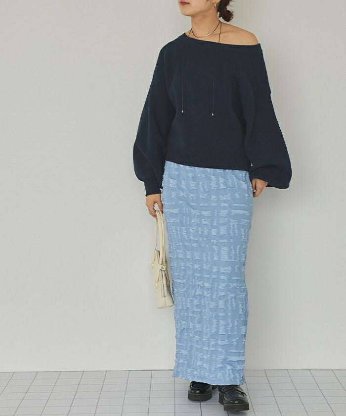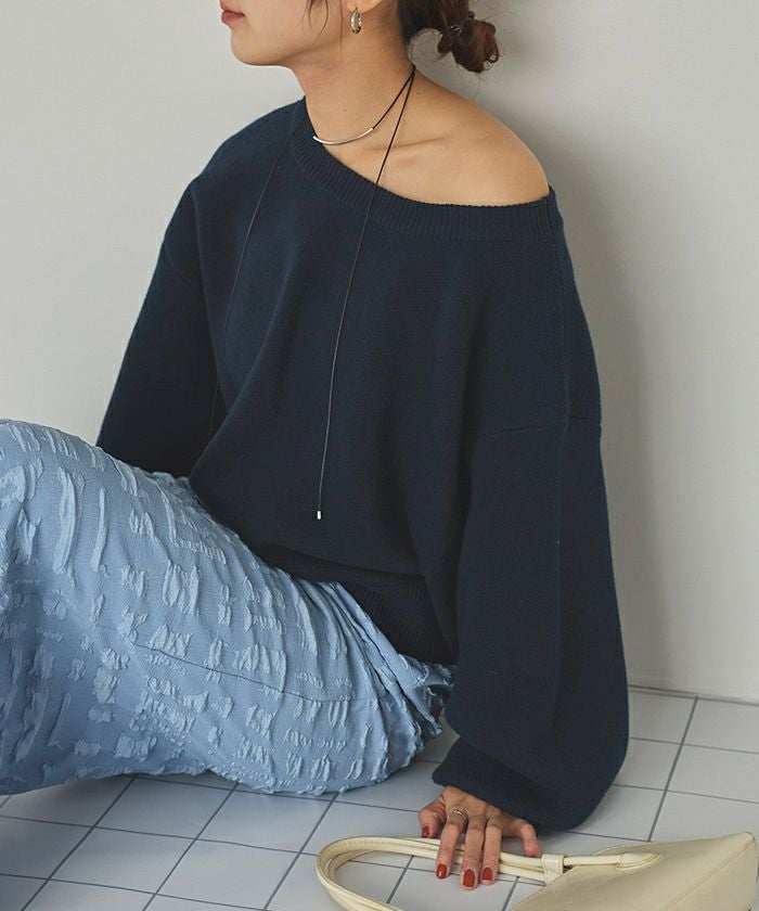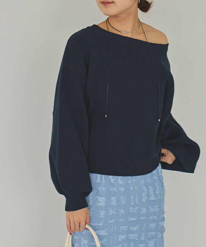 ・ボリューム袖で女性らしく、ぱふっとしたシルエットがかわいらしいニットトップス