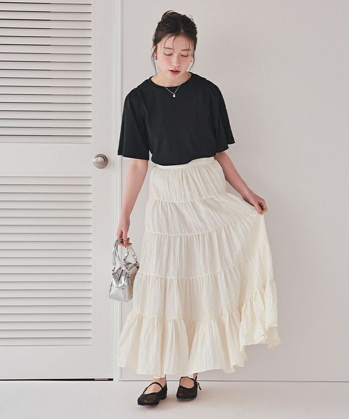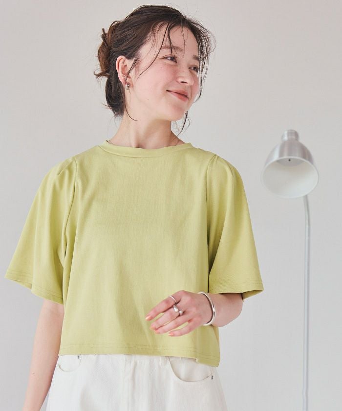 ・ボリューム感のあるタックスリーブが大人可愛い半袖トップス
