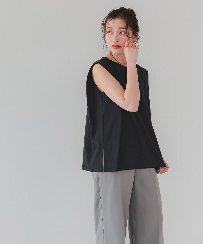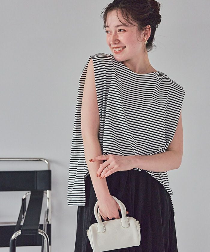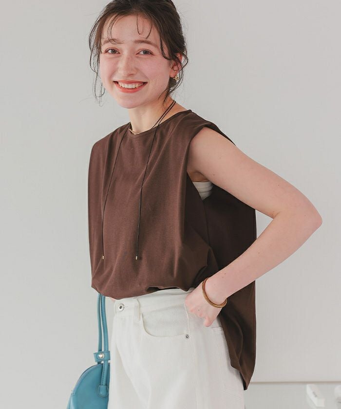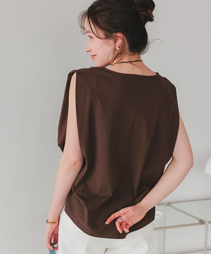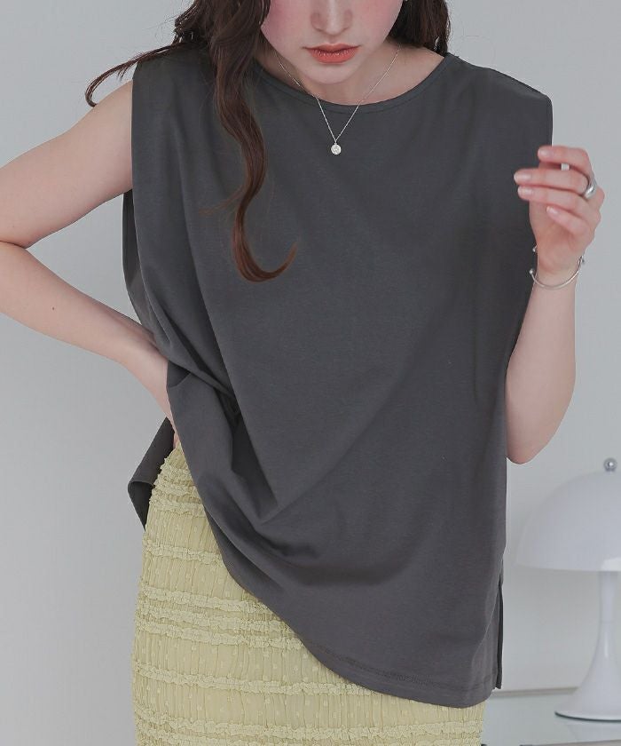 ・タックショルダー仕様のフレンチスリーブ丈でしっかりと肩回り、二の腕をカバーしつつ大人かわいい抜け感も演出してくれる万能Tシャツ