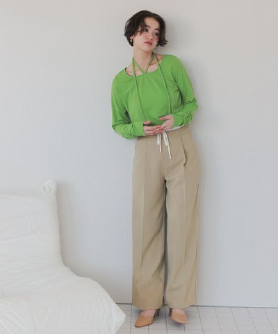 ・首元の紐はホルターネックのように結んでも、首の後ろでクロスし前で垂らしてもかわいく、ヘアスタイルやスタイリングによってお好みの見栄えでご着用いただけます