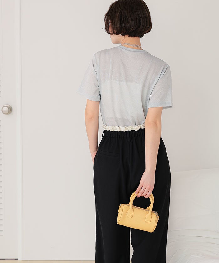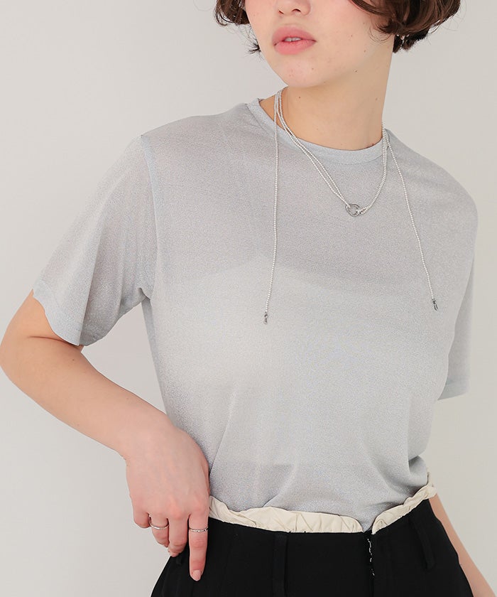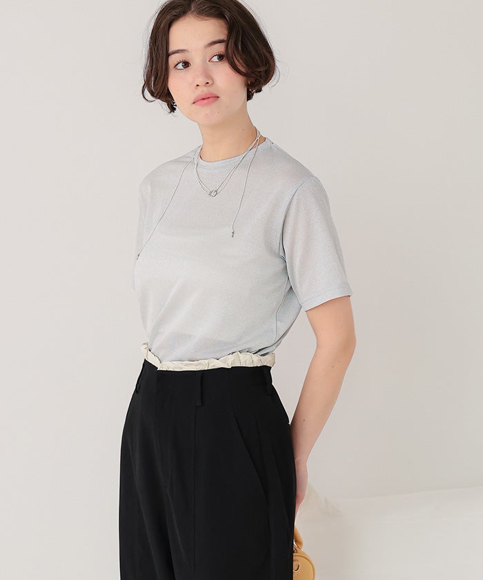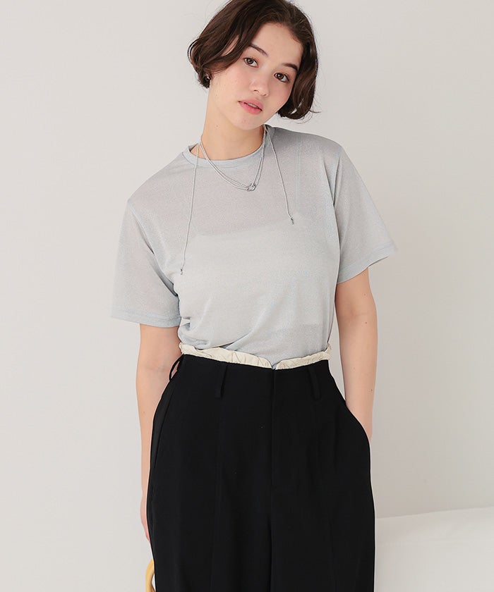 ラメが入っているので一枚で着てもシンプルになりすぎず、ビスチェなどのインナーにも使えるので便利です。とても涼しく、汗染みも気にせず着れます。