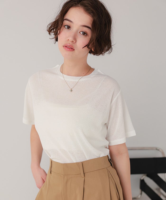 ・程よいシアー感がおしゃれ見えする、カットソートップス