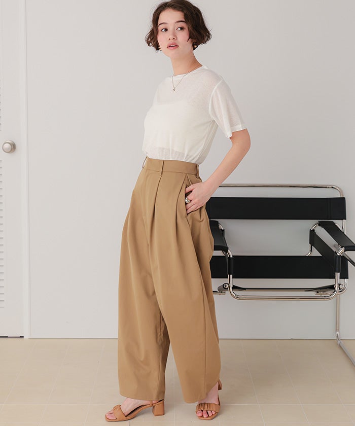 ・襟ぐりは細めの切り替えに仕上げ、カジュアルすぎず女性らしいTシャツシルエットに仕上げました