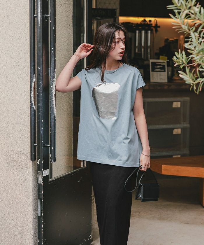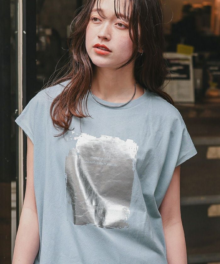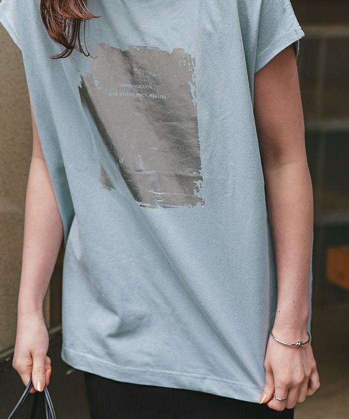 箔プリントフレンチスリーブTシャツ【メール便可/90】