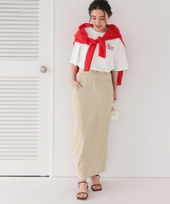 生地感も柔らかくて伸縮性もあって、タイトなシルエットだけどとても履きやすい!そしてタイトスカートは特にポケットがないものが多いけれど、こちらはしっかりめのポケットがあるのもかなり良いポイントでした。