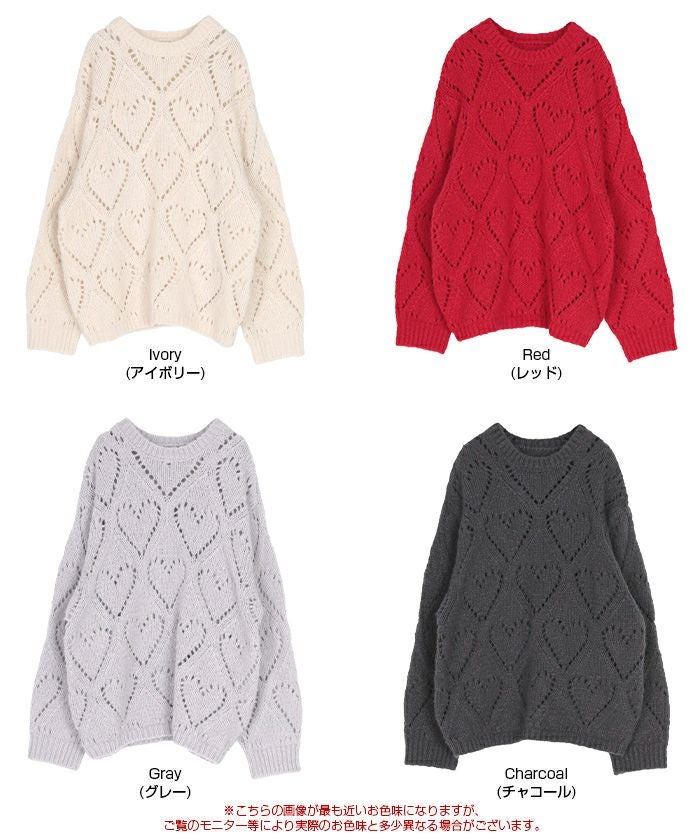 ハート透かし柄モヘアタッチニット