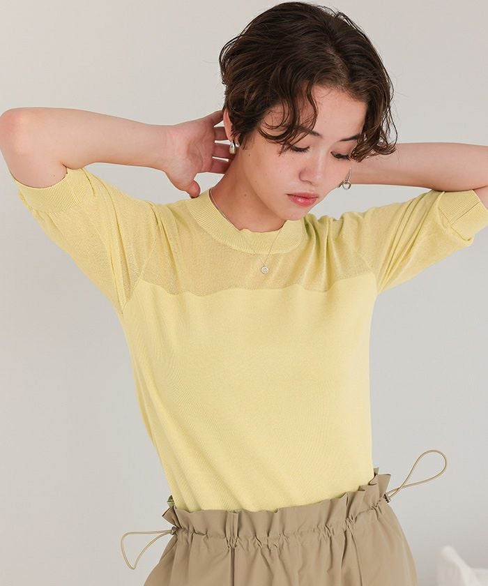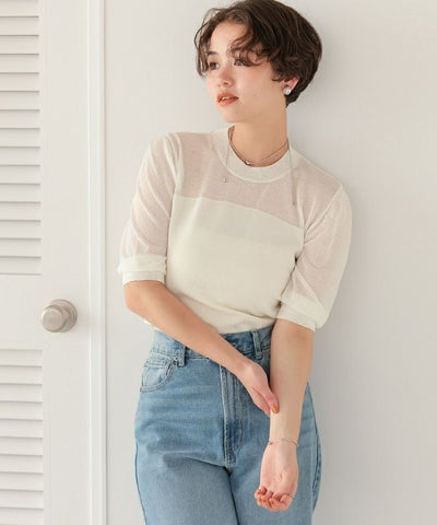 ・襟ぐりと袖のシアー感で女性らしく抜け感のある見映えに