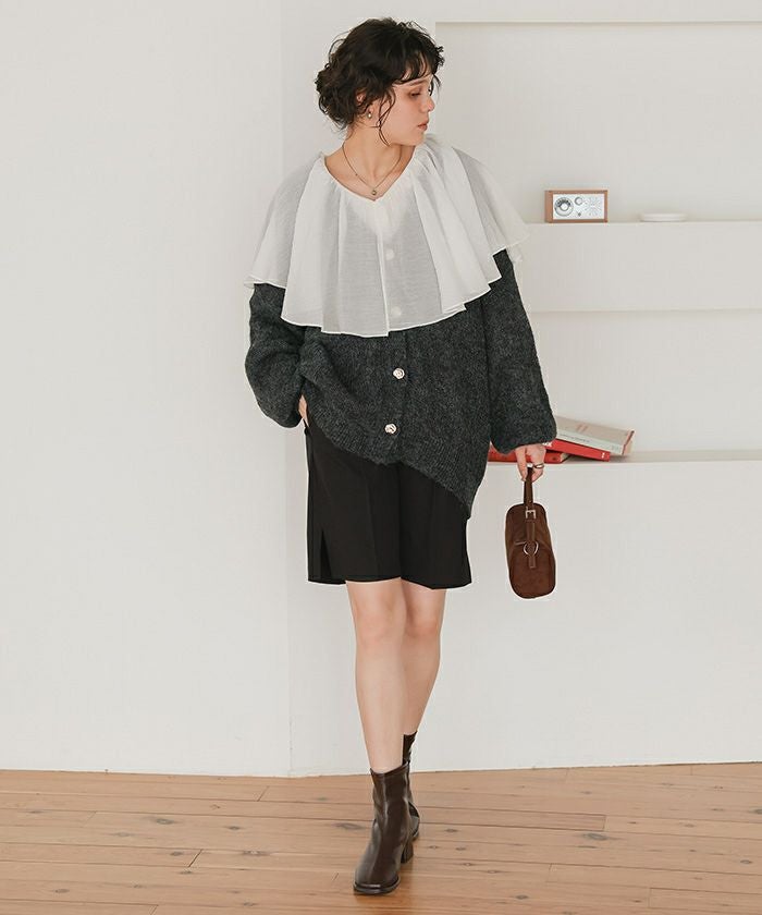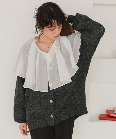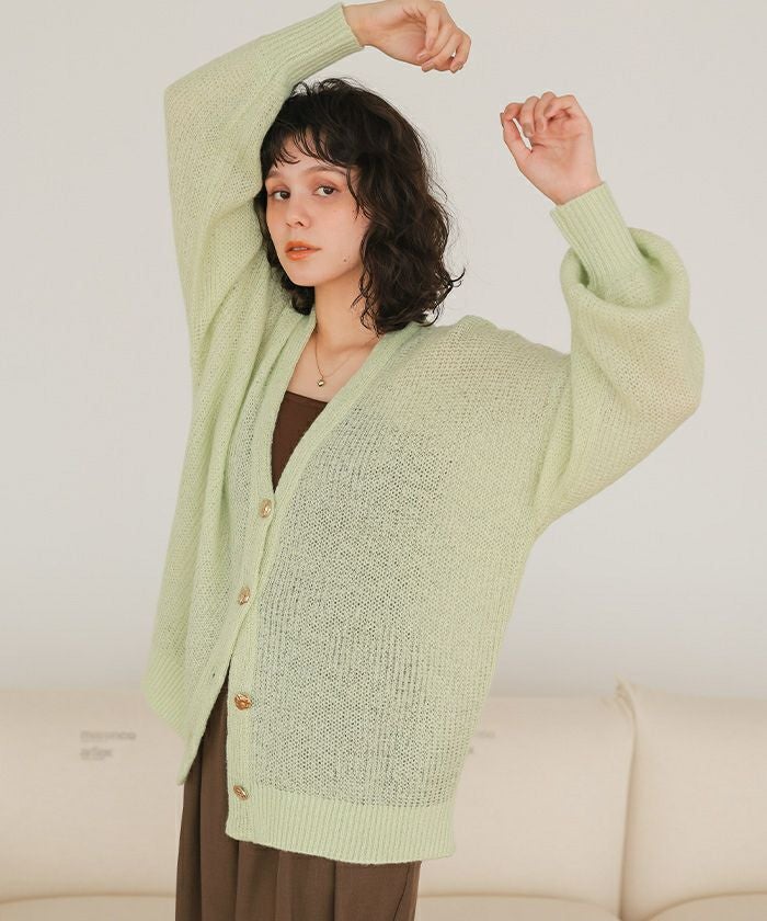 ・ふんわり透け感がかわいい、モヘアライクな軽やかニットカーディガン