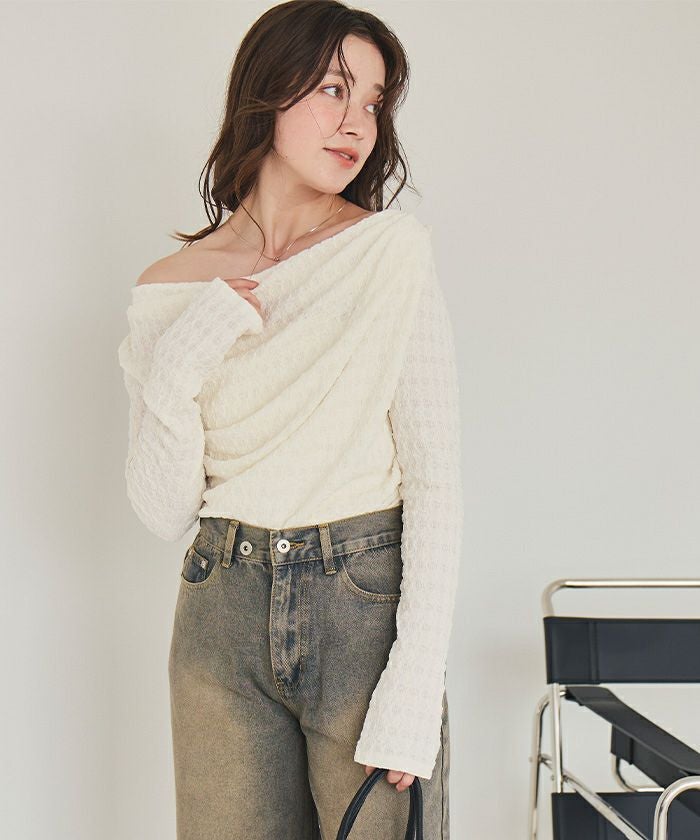 骨格ウェーブ身長161cm,45kgでMサイズを税込1316円の時に購入しました。これは絶対白黒イロチで買うべきです!素材もザラザラせず柔らかく夏以外着れます!肩出しも出来るし何通りにもなります!グレーのフレアワイドデニムに合わせて着ています!ピンク再入荷あれば絶対買います笑