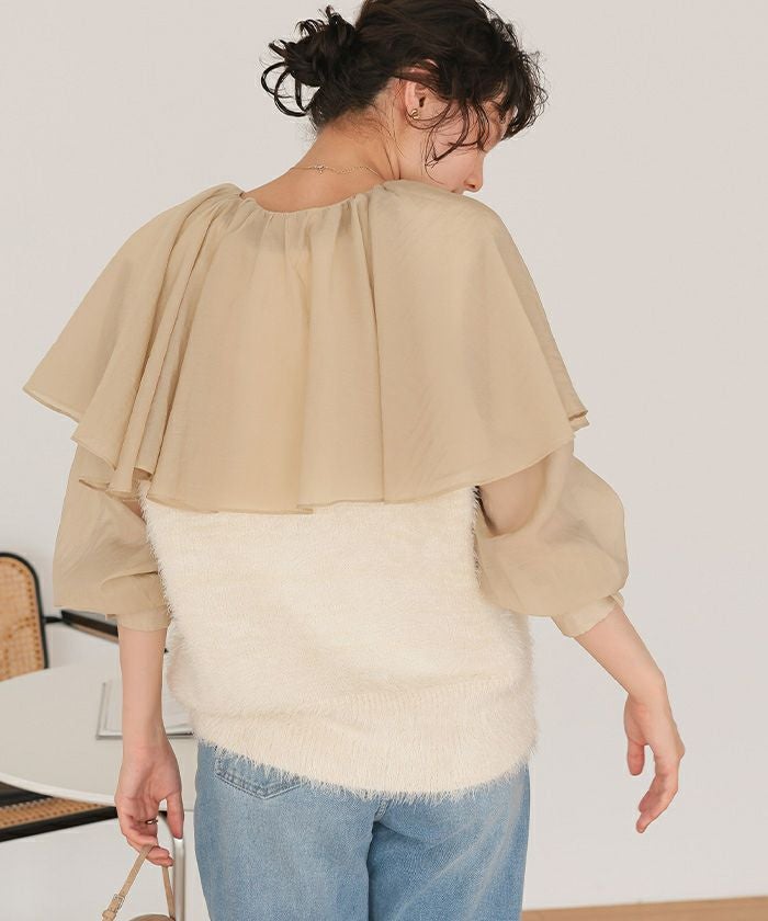 ・ゆったりとしたサイズ感なので、少し肌寒い季節では中にハイネックのリブニットなどレイヤードして頂くのもお勧めです
