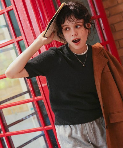 レイヤードデザインふわっとタッチハーフスリーブニット