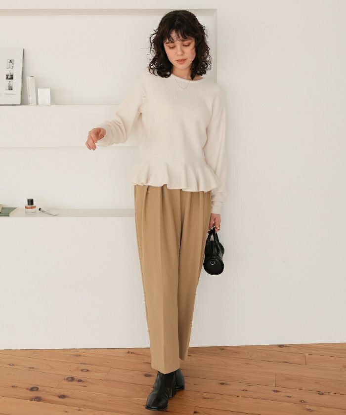 ・程よく落ち感のあるレーヨン混ニット素材で、動くたびに裾がふんわりと揺れるシルエット