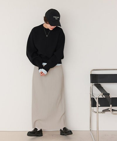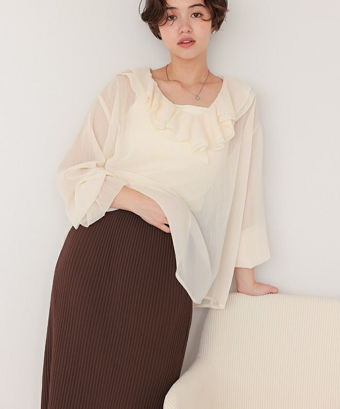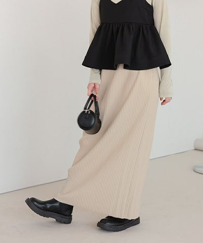 ・ストレッチ性のあるカットジョーゼット素材をプリーツ加工し、高見えしつつも楽な着心地が叶う素材使いにこだわりました