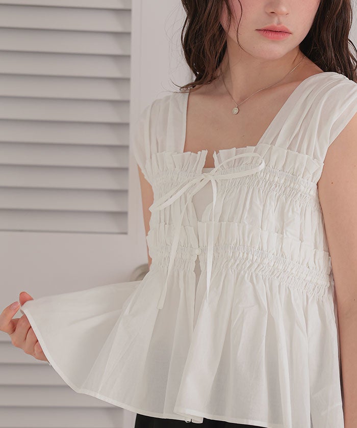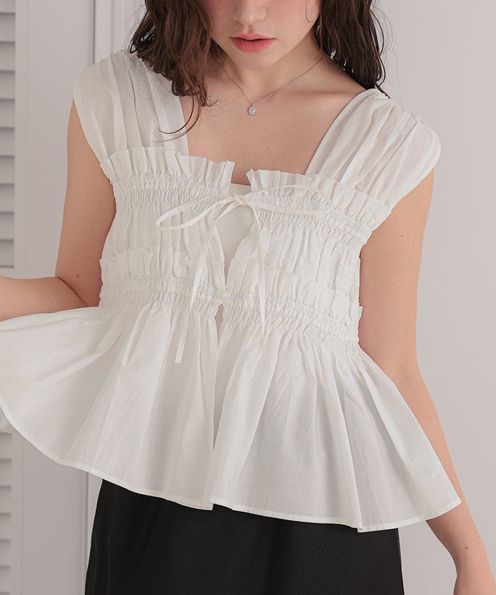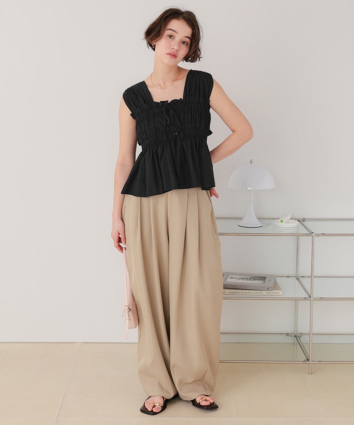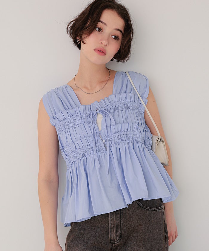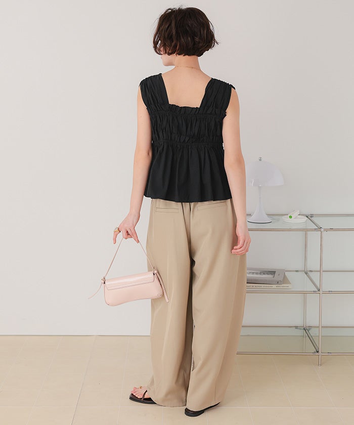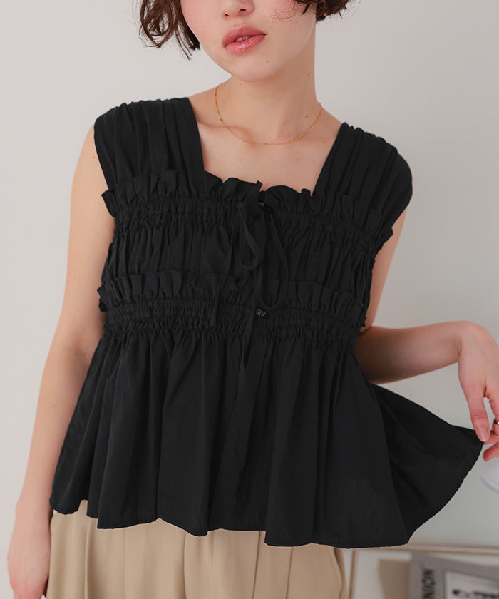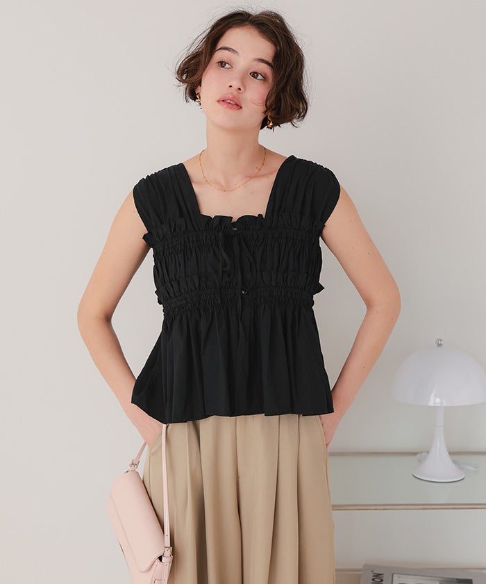 シャーリングノースリーブブラウス