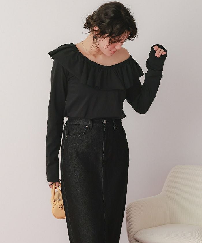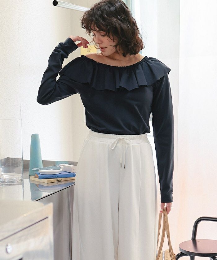 ・顔まわりを華やかに見せる広めの襟ぐりと、たっぷりフリルが作る“柔らかいアクセント”