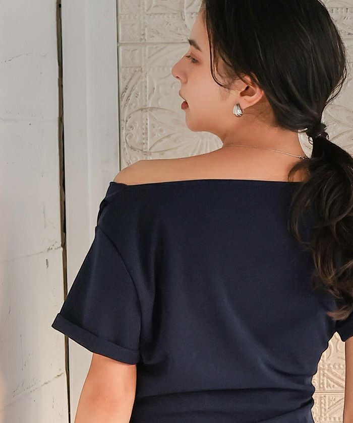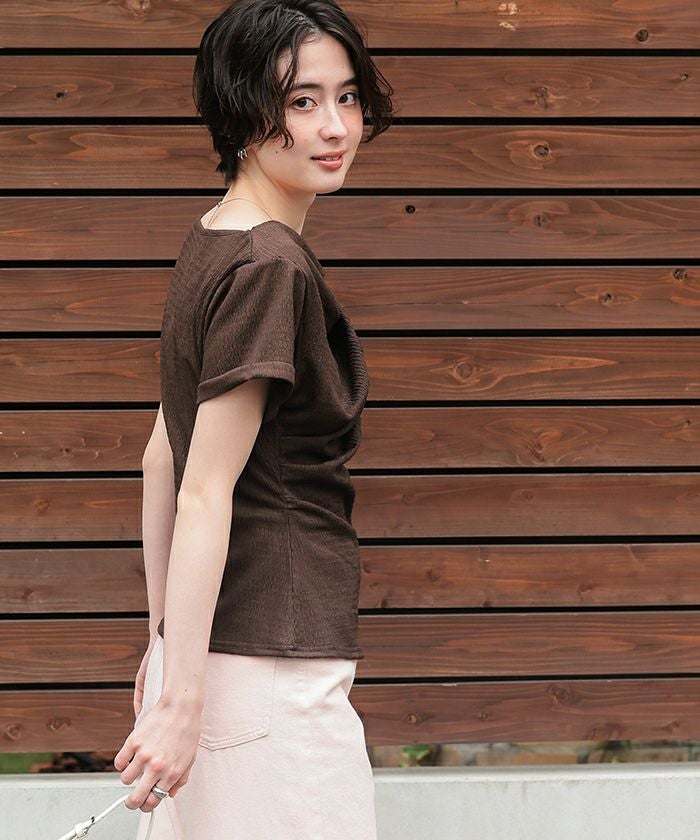 スリットデザインドレープ半袖Tシャツ【メール便可/100】