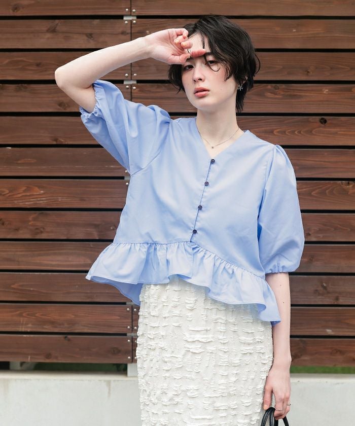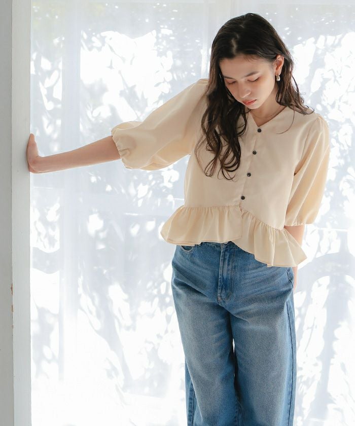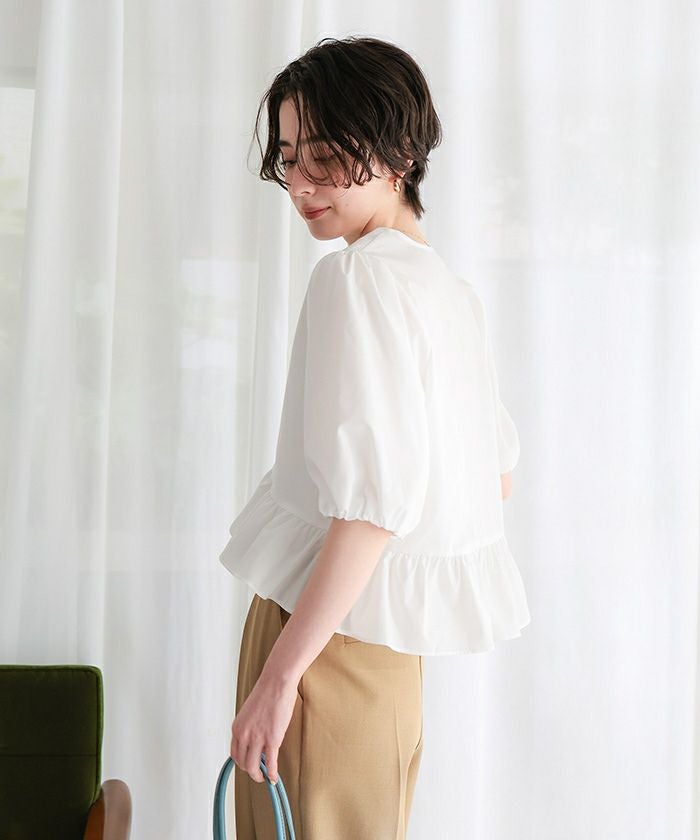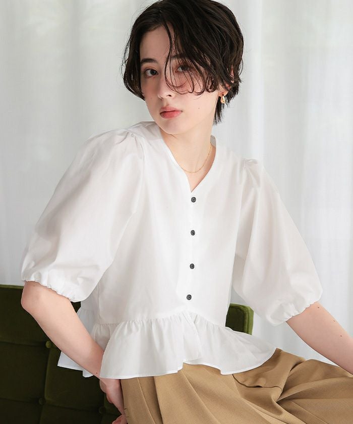 ペプラムギャザーパフスリーブブラウス【メール便可/100】