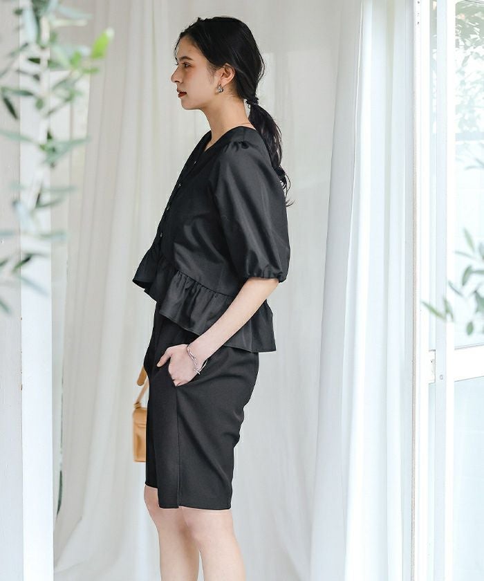 ・立体感のあるシルエットが魅力の、ペプラムデザインブラウス