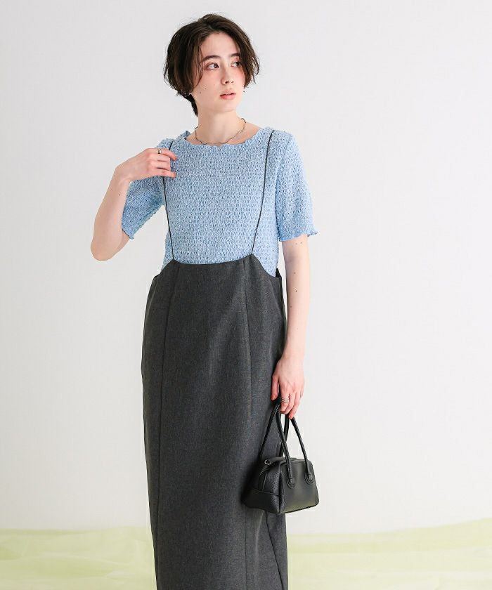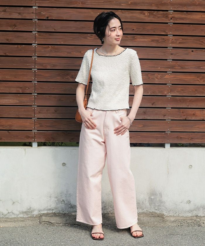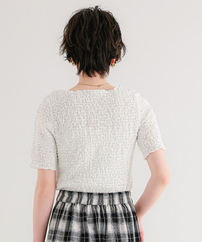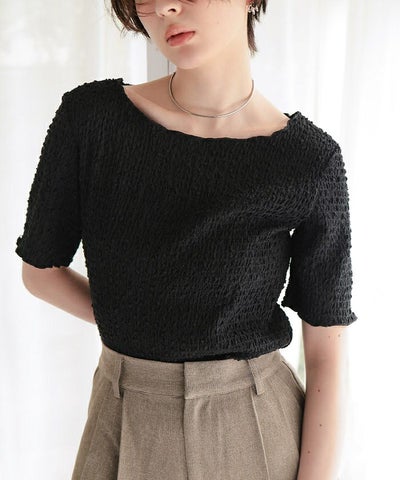 ・立体感のあるシャーリング素材が魅力のツブツブシャーリングカットソー