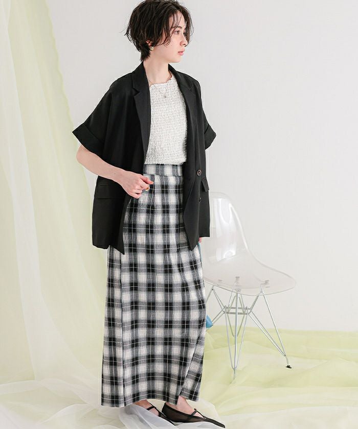 ・袖は少し長めのハーフスリーブにすることで、腕周りをすっきり見せてくれる