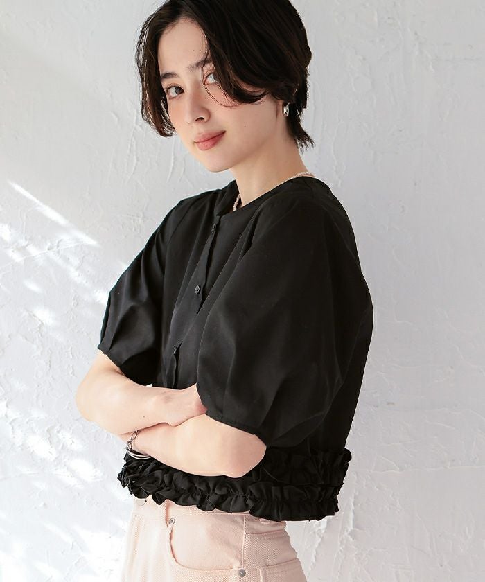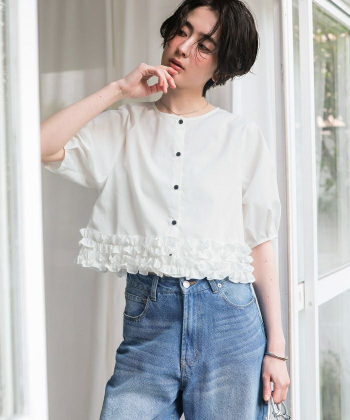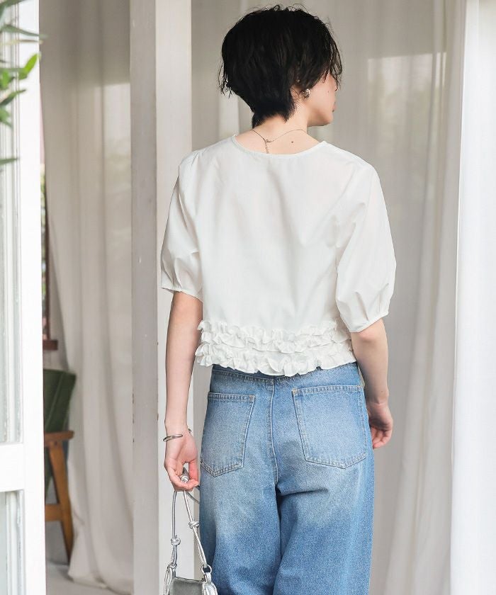裾ダブルフリルハーフスリーブブラウス【メール便可/100】