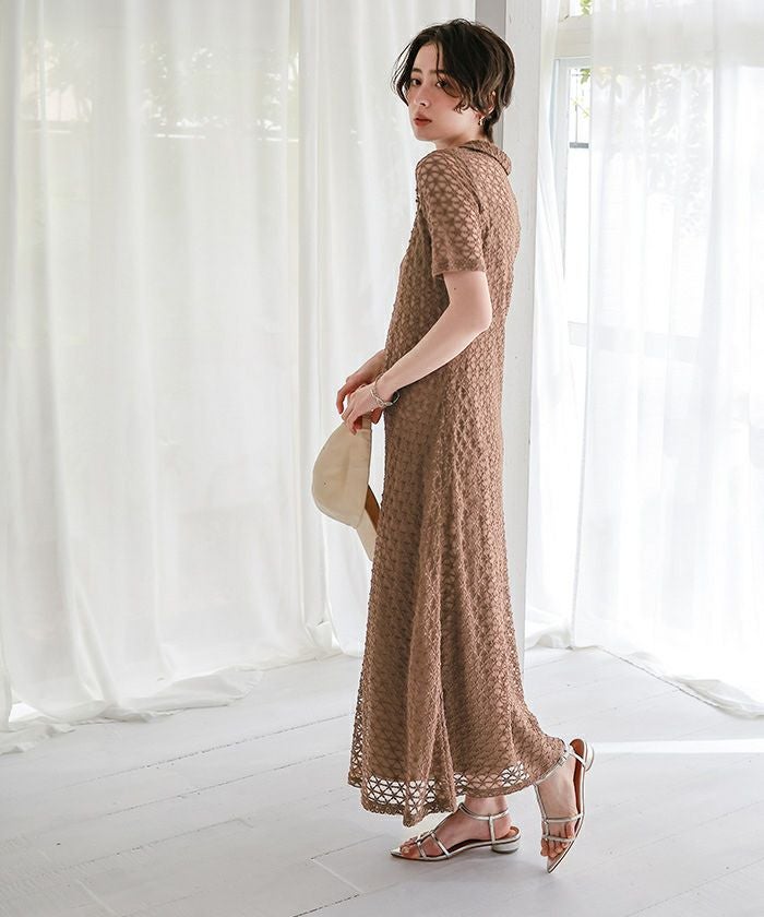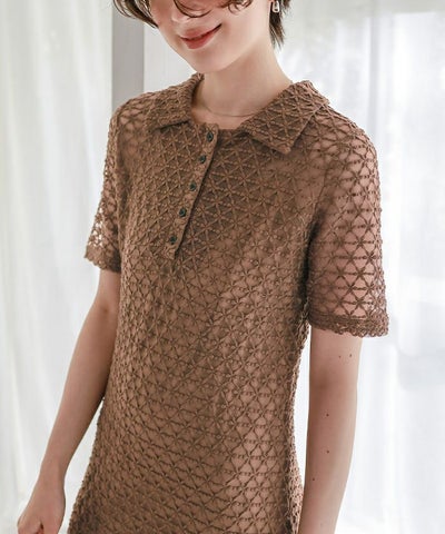 ポロ襟レースワンピース