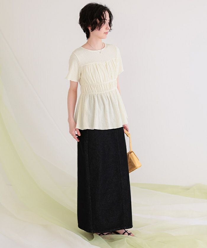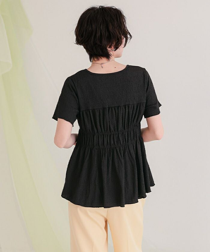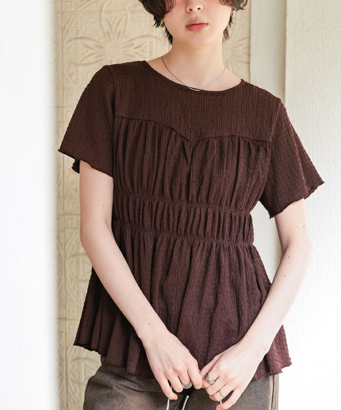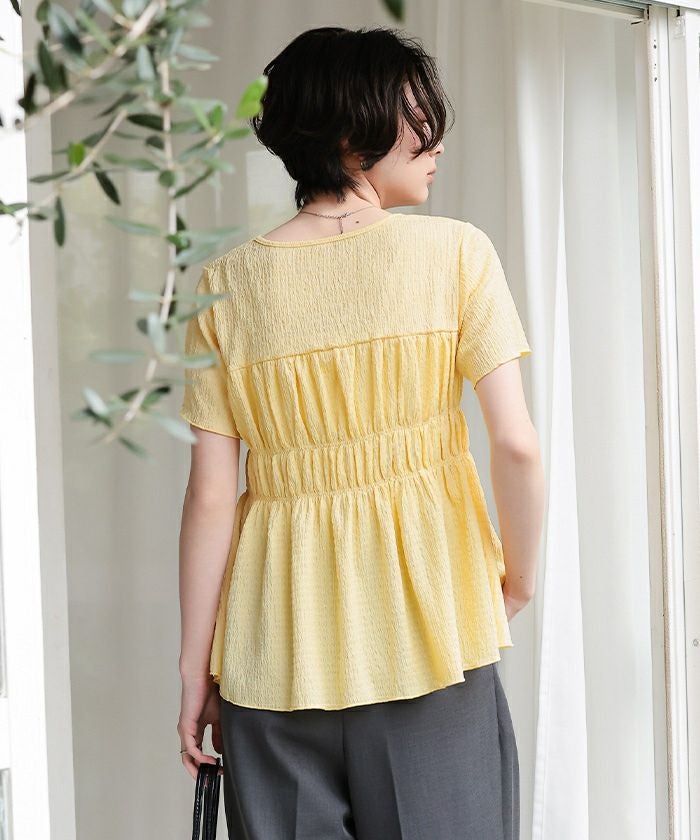 シャーリングペプラムトップス