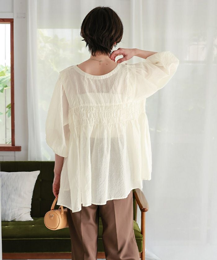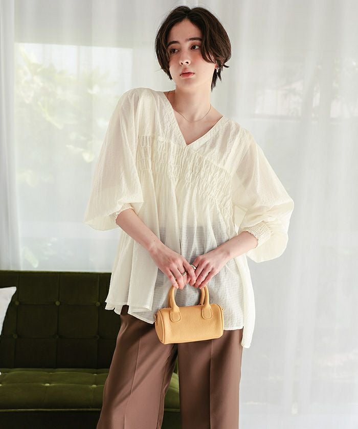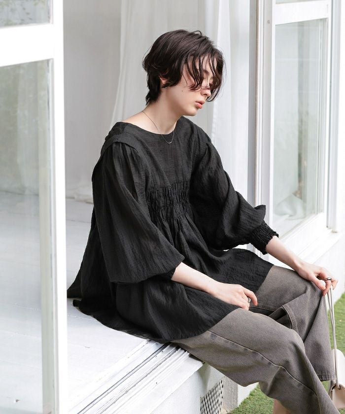 前後2wayシャーリングチュニックブラウス