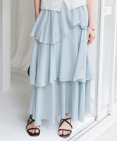 ・歩くたびに揺れるランダムヘムが、軽やかで華やかな印象を演出