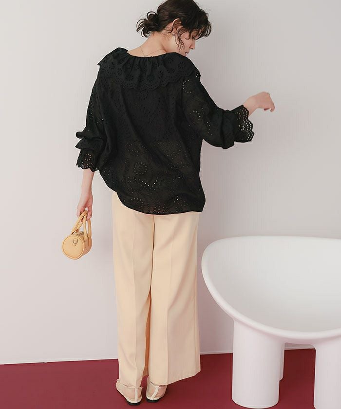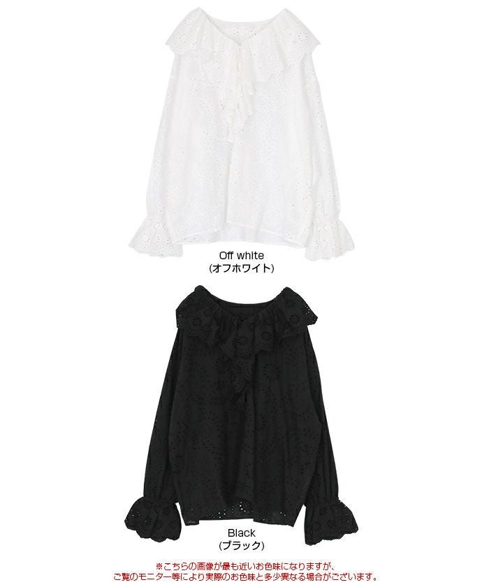 フリルカラーレースブラウス