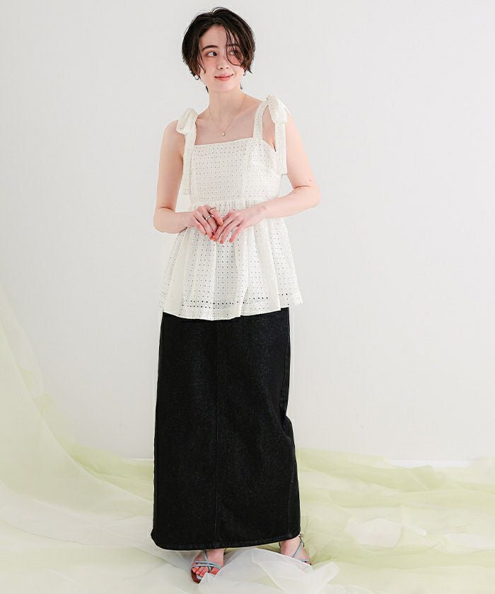 ・肩先のリボンディテールが視線をキャッチ。甘さの中に抜け感もあるデザイン