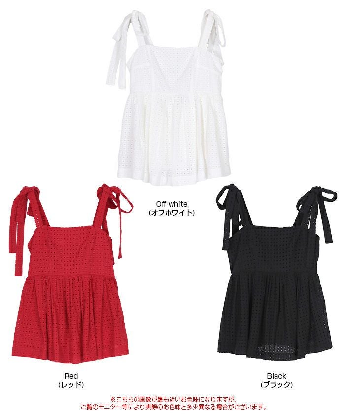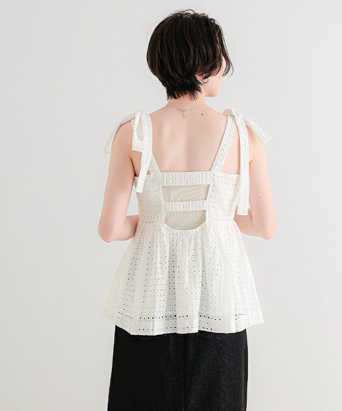 コットンレースペプラムリボントップス