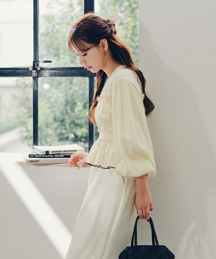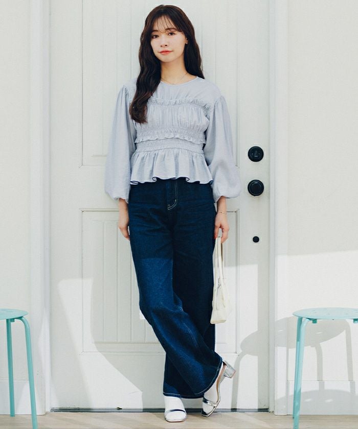 ・ボリューム袖で、ブラウジングして着用すれば華奢見えのバランスが◎
